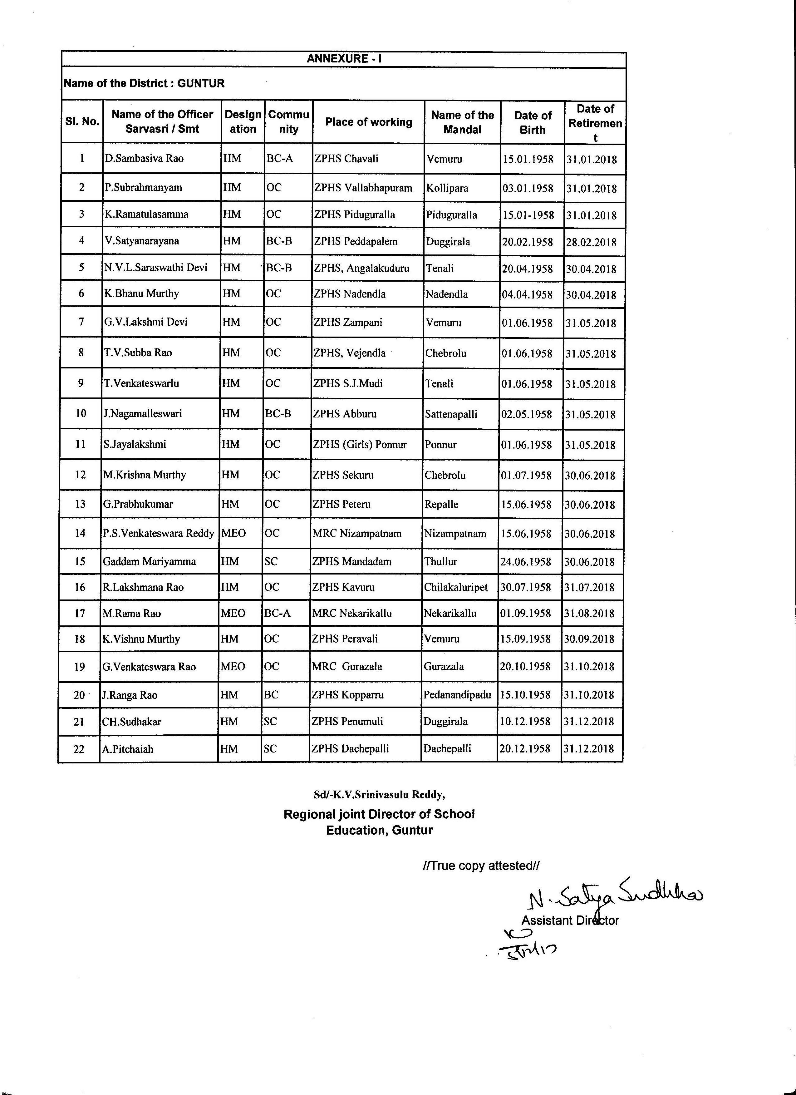 2) RETIREMENTS NOTICES